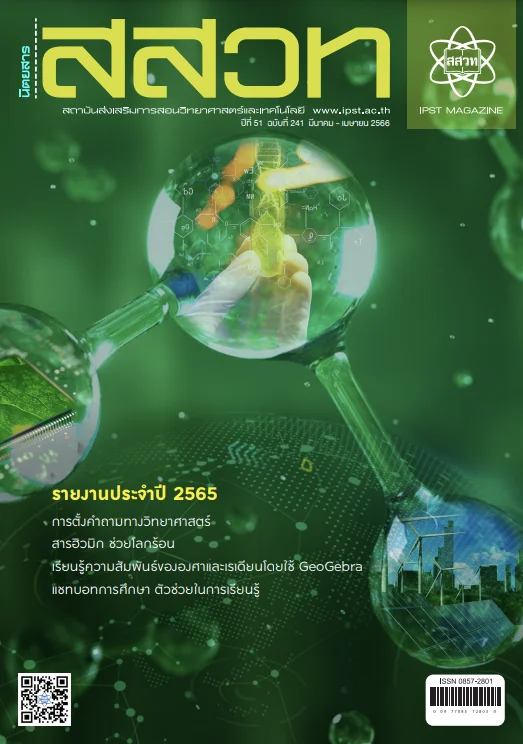 นิตยสาร สสวท. ปีที่ 50 ฉบับที่ 237 กรกฎาคม – สิงหาคม 2565 1 กรกฎาคม 2565 แก้ไขล่าสุดเมื่อ: (แก้ไข 9 ธันวาคม 2022)