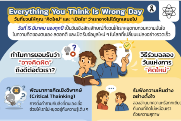 สสวท. ร่วมน้อมรำลึกพระมหากรุณาธิคุณอันหาที่สุดไม่ได้ ของพระบาทสมเด็จพระบรมชนกาธิเบศร มหาภูมิพลอดุลยเดชมหาราช บรมนาถบพิตร เนื่องในวันคล้ายวันพระบรมราชสมภพ วันชาติ และวันพ่อแห่งชาติ 5 ธันวาคม 3 ธันวาคม 2567 แก้ไขล่าสุดเมื่อ: (แก้ไข 4 ธันวาคม 2024)