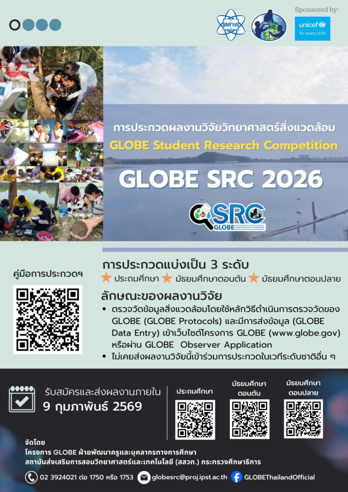 เตรียมตัวให้พร้อม เป็นนักวิจัยวิทยาศาสตร์สิ่งแวดล้อม กับเวทีการประกวดผลงานวิจัยวิทยาศาสตร์สิ่งแวดล้อม ประจำปี 2569 GLOBE Student Research Competition 2026