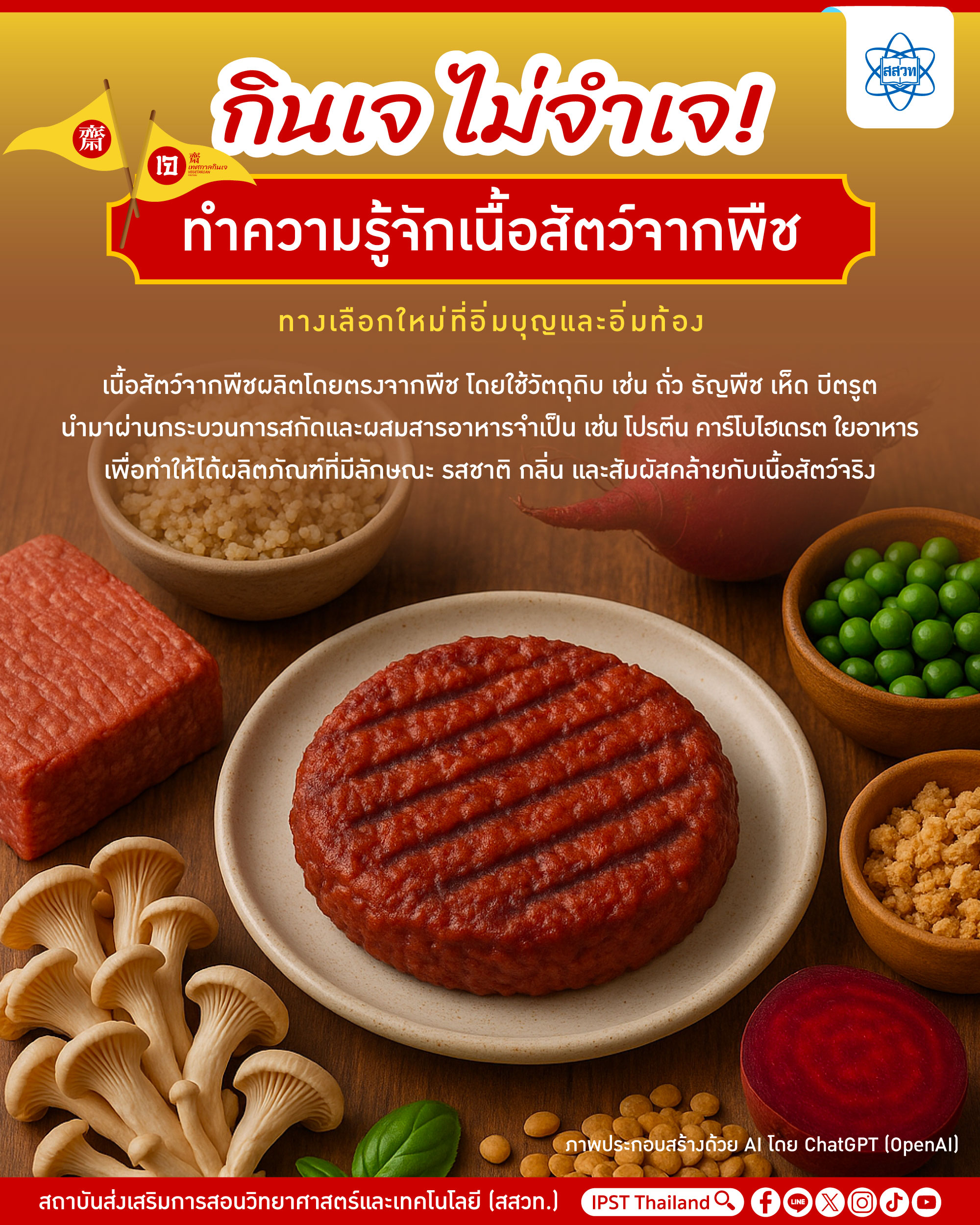 จากที่กล่าวมาข้างต้นจะเห็นว่า การเลือกเนื้อสัตว์จากพืชในเทศกาลกินเจปี 2568 ไม่เพียงแต่ช่วยให้ผู้บริโภคได้บุญ ได้สุขภาพ แต่ยังเป็นส่วนหนึ่งในการสนับสนุนการเปลี่ยนแปลงเชิงบวกทั้งต่อสัตว์ โลก และระบบอาหารโดยรวม ดังนั้น ในช่วงเทศกาลกินเจปีนี้ หากคุณอยากลองรสชาติใหม่ ๆ ที่ยังคงความใกล้เคียงเนื้อสัตว์จริง เนื้อสัตว์จากพืช (Plant-based meat) คือทางเลือกที่ทั้งอิ่มใจ อิ่มบุญ และอิ่มท้องไปพร้อมกัน