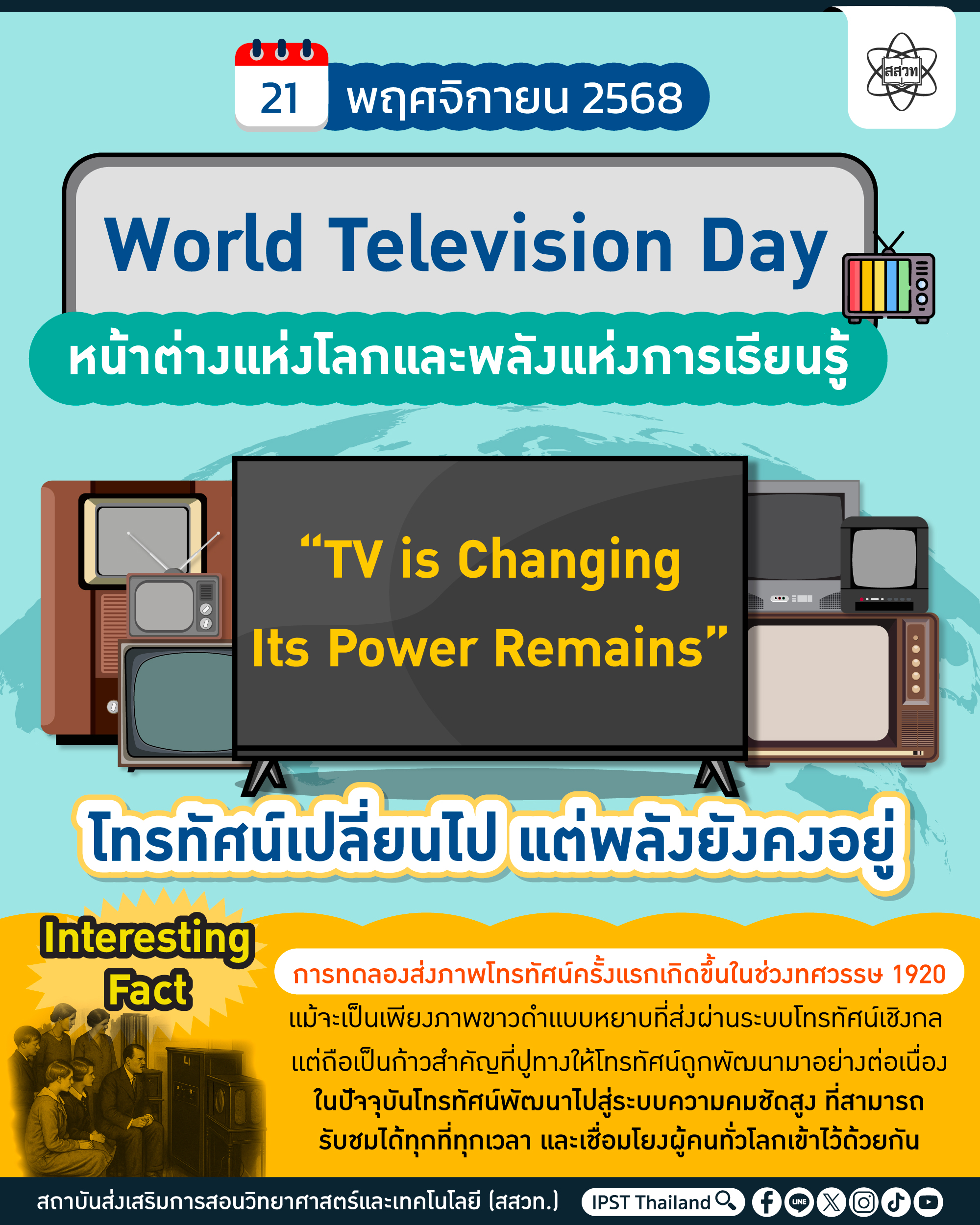 การเฉลิมฉลอง วันโทรทัศน์โลก 2025 จึงไม่ใช่เพียงการระลึกถึงแค่โทรทัศน์เครื่องเก่าที่บ้าน หากแต่เป็นการเฉลิมฉลอง “พลังของมนุษย์ในการสร้างและแบ่งปันความรู้” ผ่านเทคโนโลยีที่ผสานวิทยาศาสตร์เข้ากับจินตนาการ เยาวชนรุ่นใหม่จึงควรตระหนักว่า การเรียนรู้ด้านวิทยาศาสตร์และเทคโนโลยีคือรากฐานของนวัตกรรมการสื่อสารในอนาคต ที่จะช่วยสานต่อบทบาทของโทรทัศน์ในฐานะ “หน้าต่างแห่งโลก” อย่างแท้จริง