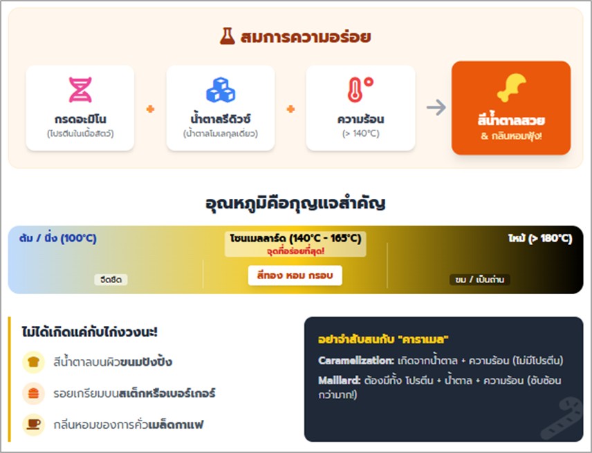 ภาพอินโฟกราฟิกแสดงปฏิกริยาเมลลาร์ด จัดทำโดย AI gemini