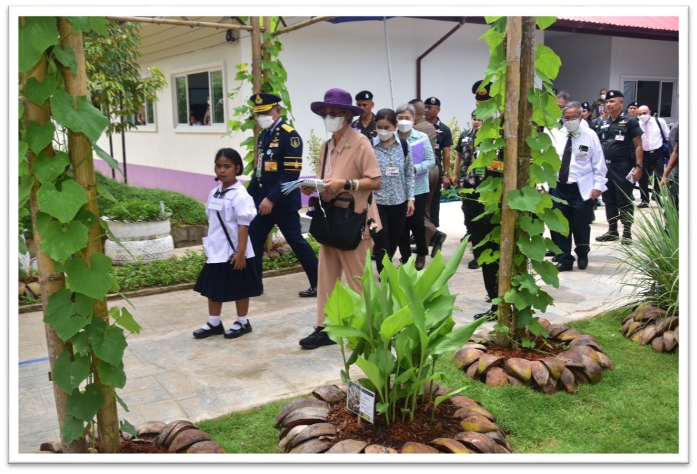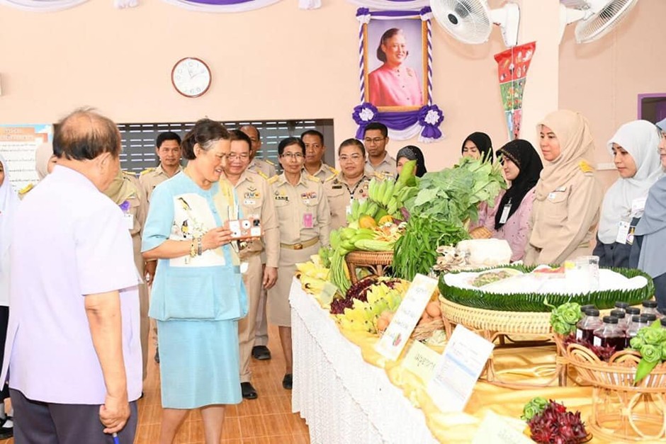 สมเด็จพระกนิษฐาธิราชเจ้า กรมสมเด็จพระเทพรัตนราชสุดาฯ สยามบรมราชกุมารี เสด็จพระราชดำเนินทรงติดตามการดำเนินงาน โครงการเกษตรเพื่ออาหารกลางวันโรงเรียนบ้านเขาตันหยงมิตรภาพที่ 153 หมู่ที่ 4 ตำบลกะลุวอเหนือ อำเภอเมืองนราธิวาส จังหวัดนราธิวาส และโครงการเกษตรเพื่ออาหารกลางวันโรงเรียนบ้านบางมะนาว หมู่ที่ 1 ตำบลกะลุวอเหนือ อำเภอเมือง จังหวัดนราธิวาส เมื่อวันที่ 21 กุมภาพันธ์ 2563 (ภาพจากเว็บไซต์ศูนย์ศึกษาการพัฒนาพิกุลทองอันเนื่องมาจากพระราชดำริ)