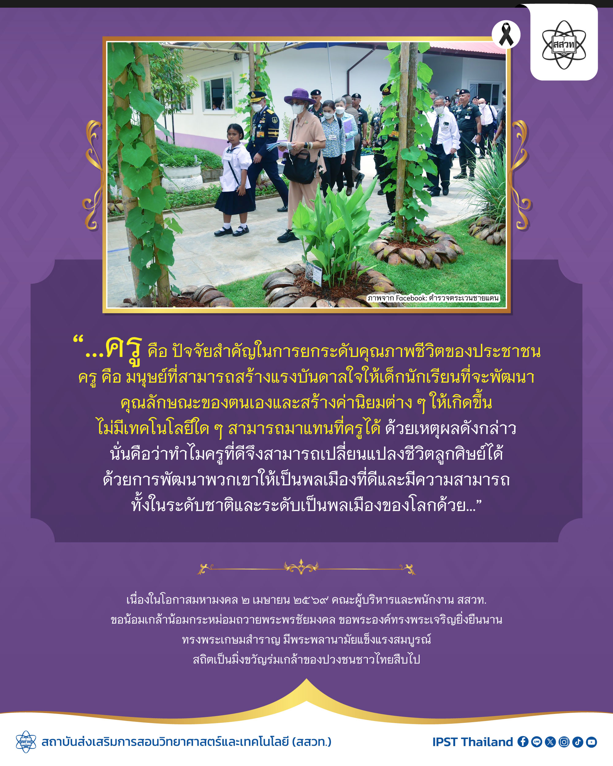 เนื่องในโอกาสมหามงคล 2 เมษายน 2569 คณะผู้บริหารและพนักงาน สสวท. ขอน้อมเกล้าน้อมกระหม่อมถวายพระพรชัยมงคล ขอพระองค์ทรงพระเจริญยิ่งยืนนาน ทรงพระเกษมสำราญ มีพระพลานามัยแข็งแรงสมบูรณ์ สถิตเป็นมิ่งขวัญร่มเกล้าของปวงชนชาวไทยสืบไป