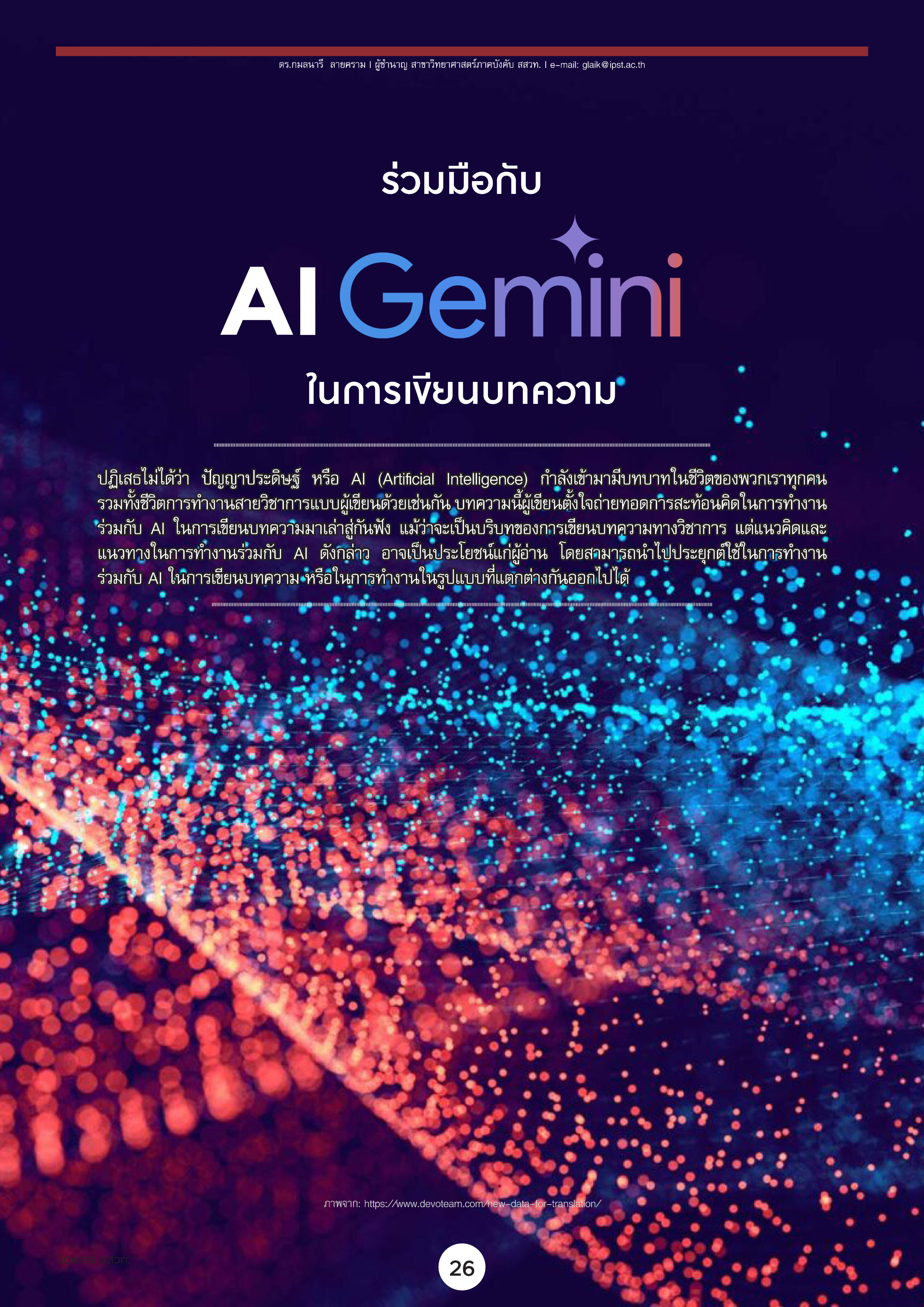 ร่วมมือกับ AI Gemini ในการเขียนบทความ 27 มีนาคม 2569 แก้ไขล่าสุดเมื่อ: (แก้ไข 27 มีนาคม 2026)จำนวนการเข้าชม 3 ครั้ง 3 โดย ดร.กมลนารี ลายคราม (ผู้ขำร่ สาขาวิทยาศาสตร์ภาคบังคับ) อ่านต่อได้ที่นิตยสาร สสวท. ปีที่ 52 ฉบับที่ 251 พฤศจิกายน – ธันวาคม 2567 หน้า 26 – 32 FacebookFacebookXTwitterLINELine