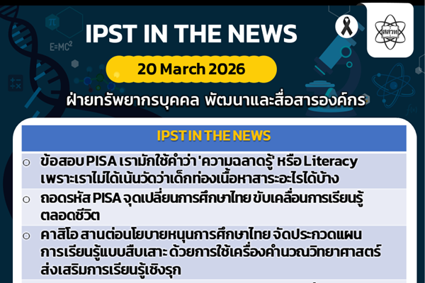 ข่าว สสวท. ประจำสัปดาห์ IPST IN THE NEWS วันที่ 20 มีนาคม 2569 20 มีนาคม 2569 แก้ไขล่าสุดเมื่อ: (แก้ไข 20 มีนาคม 2026)