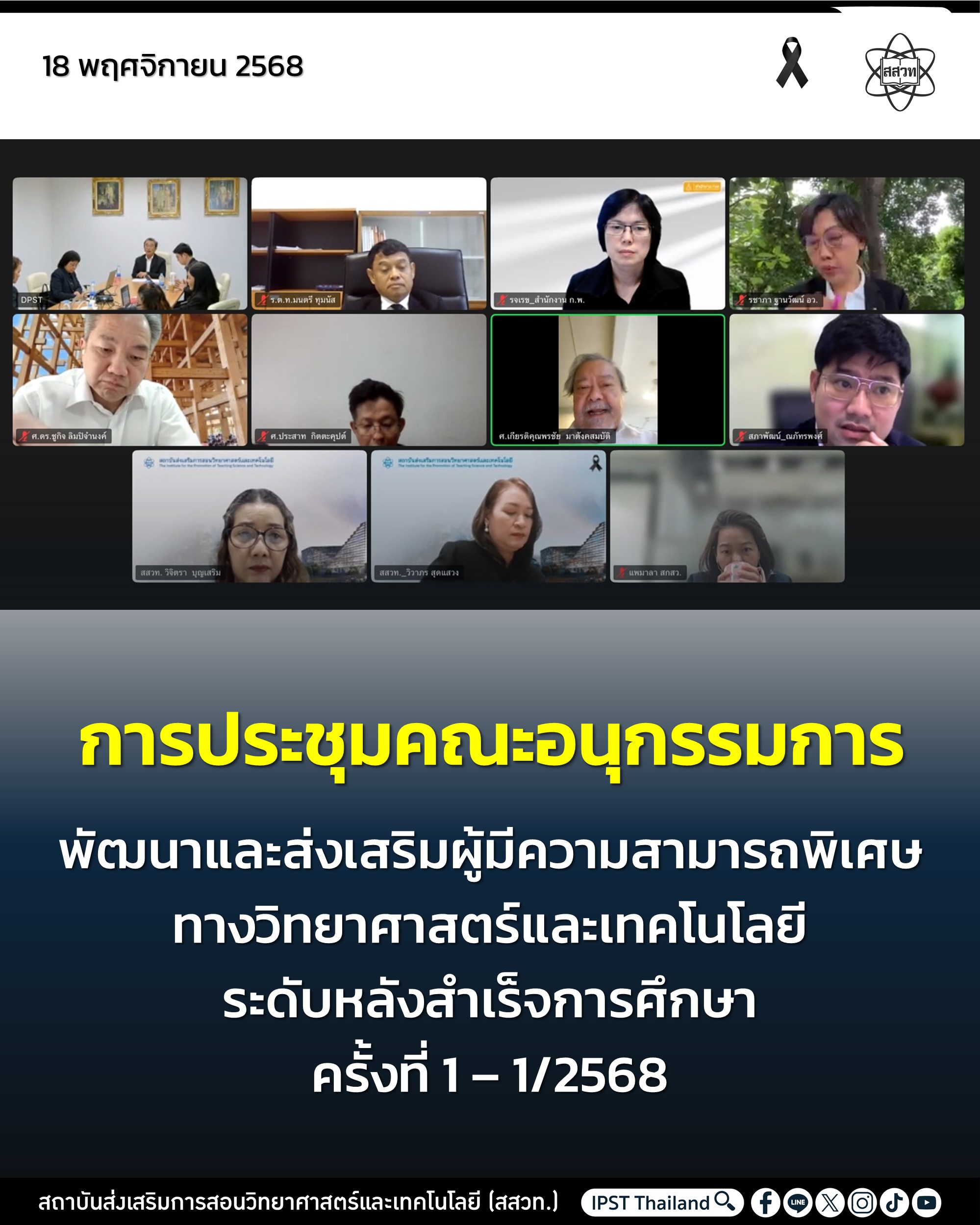 รองศาสตราจารย์วีระพงษ์ แพสุวรรณ เป็นประธานในการประชุมคณะอนุกรรมการพัฒนาและส่งเสริมผู้มีความสามารถพิเศษทางวิทยาศาสตร์และเทคโนโลยี ระดับหลังสำเร็จการศึกษา ครั้งที่ 1 – 1/2568 ในรูปแบบออนไลน์ เมื่อวันที่ 18 พฤศจิกายน 2568 จัดโดยสถาบันส่งเสริมการสอนวิทยาศาสตร์และเทคโนโลยี (สสวท.) สาระสำคัญในการประชุมครั้งนี้เกี่ยวกับการรับทราบสรุปมติการประชุมคณะกรรมการกำหนดนโยบายผู้มีความสามารถพิเศษทางวิทยาศาสตร์และเทคโนโลยี ครั้งที่ 41-1/2568 หลักเกณฑ์ วิธีการ มติการประชุม หน้าที่ และการมอบอำนาจในการดำเนินงานทุน พสวท. ระดับหลังสำเร็จการศึกษา รายงานผลการดำเนินงาน และแนวทางการดำเนินงานต่าง ๆ และการพิจารณาแนวทางการดำเนินงานที่สำคัญ เช่น การขออนุมัติขยายเวลาการหาหน่วยงานเข้าปฏิบัติงานตอบแทนทุนของผู้สำเร็จการศึกษา การขออนุมัติให้หน่วยงานเอกชนและโรงเรียนเอกชนเป็นหน่วยงานปฏิบัติงานตอบแทนทุน พสวท.