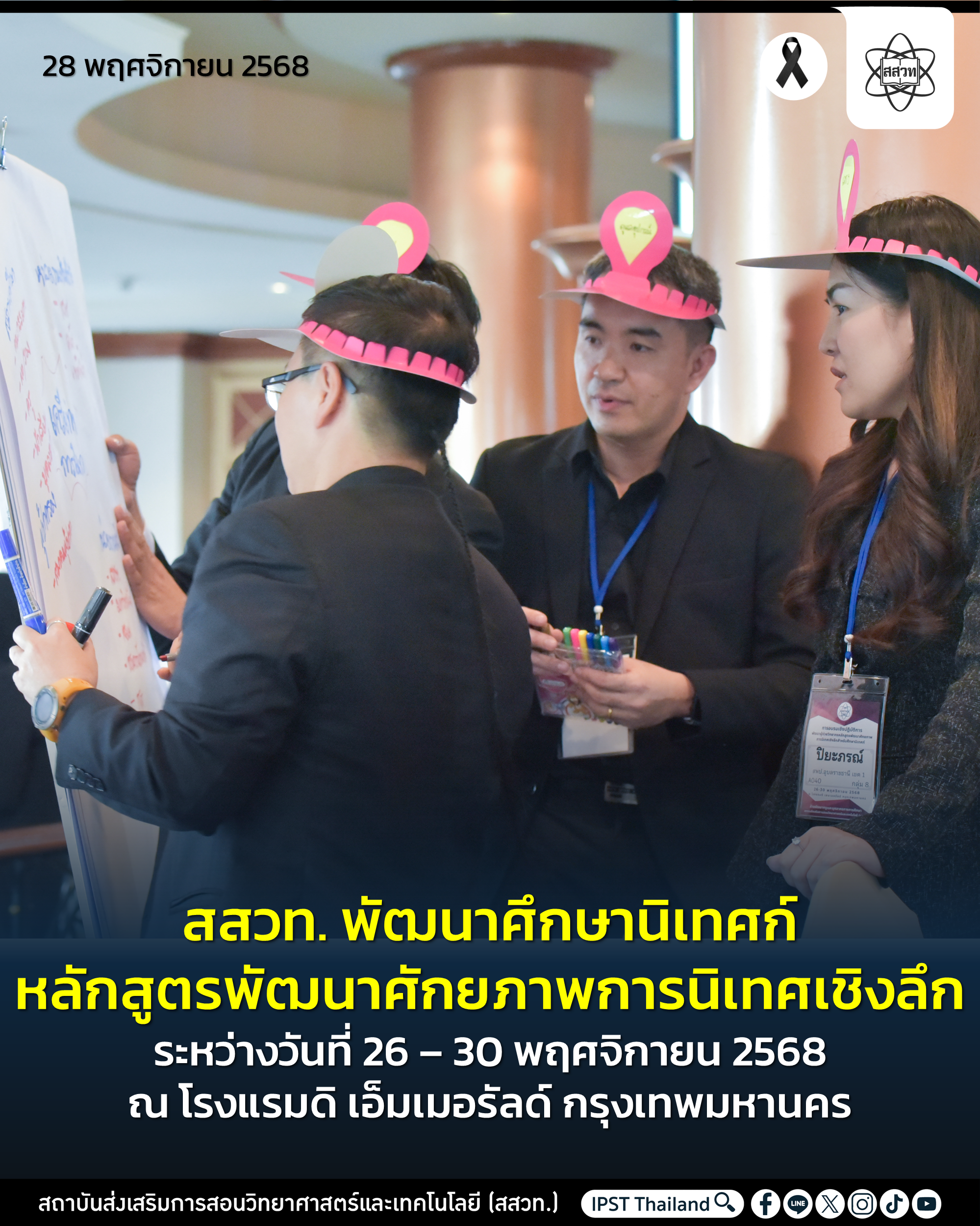 สถาบันส่งเสริมการสอนวิทยาศาสตร์และเทคโนโลยี (สสวท.) โดยฝ่ายพัฒนาครูและบุคลากรทางการศึกษา สสวท. จัดการอบรมเชิงปฏิบัติการพัฒนาผู้ช่วยวิทยากร หลักสูตรพัฒนาศักยภาพการนิเทศเชิงลึกสำหรับศึกษานิเทศก์ ระหว่างวันที่ 26–30 พฤศจิกายน 2568 ณ โรงแรมดิ เอมเมอรัลด์ กรุงเทพมหานคร เพื่อเตรียมความพร้อมของศึกษานิเทศก์ที่มีศักยภาพสูงให้สามารถร่วมเป็นทีมวิทยากรในการขยายผลการนิเทศเชิงลึกด้านวิทยาศาสตร์ คณิตศาสตร์ และเทคโนโลยีทั่วประเทศ