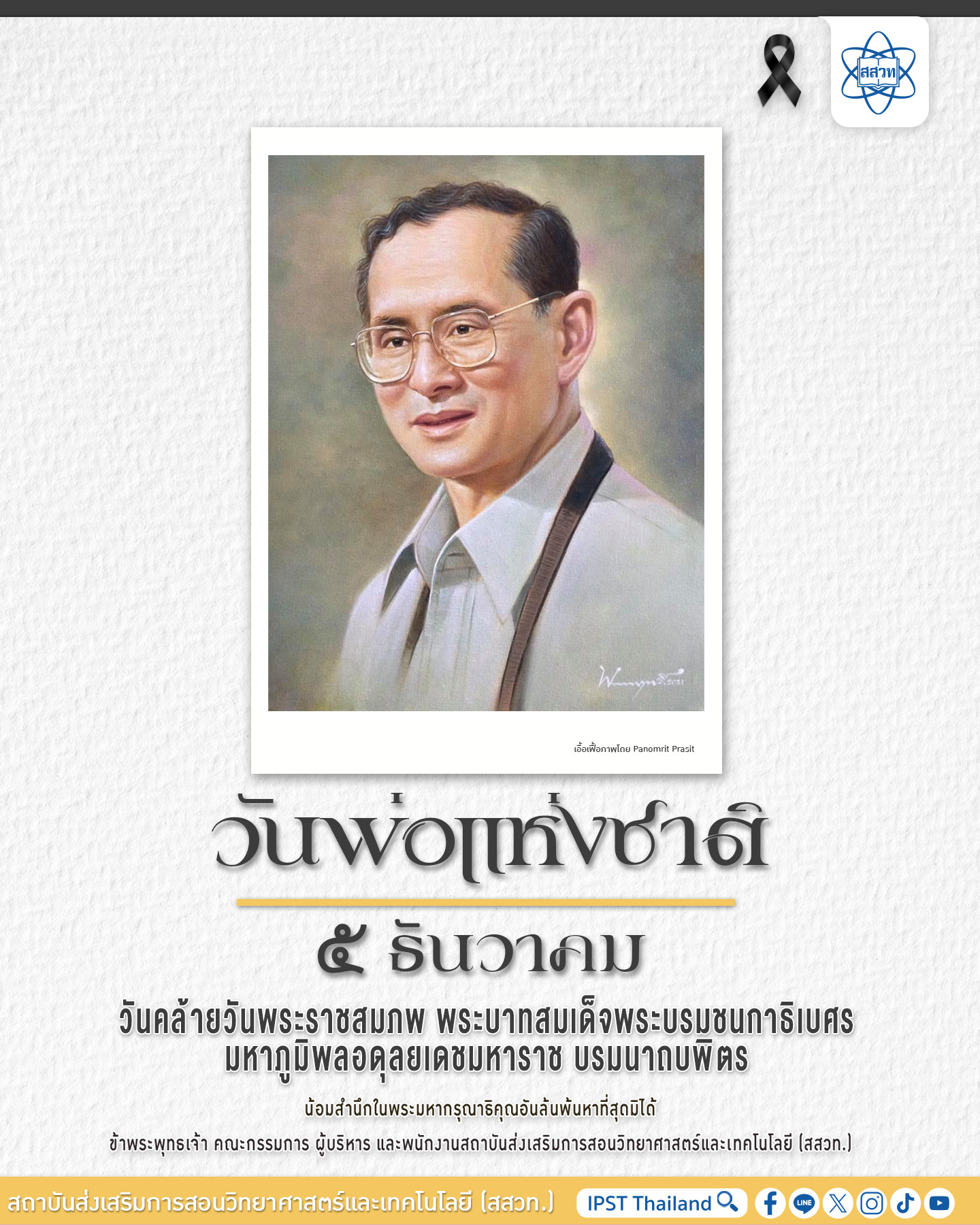 ผู้บริหารและบุคลากร สสวท. ขอถวายราชสดุดี น้อมรำลึกในพระมหากรุณาธิคุณ พระบาทสมเด็จพระบรมชนกาธิเบศร มหาภูมิพลอดุลยเดชมหาราช บรมนาถบพิตร อย่างหาที่สุดมิได้