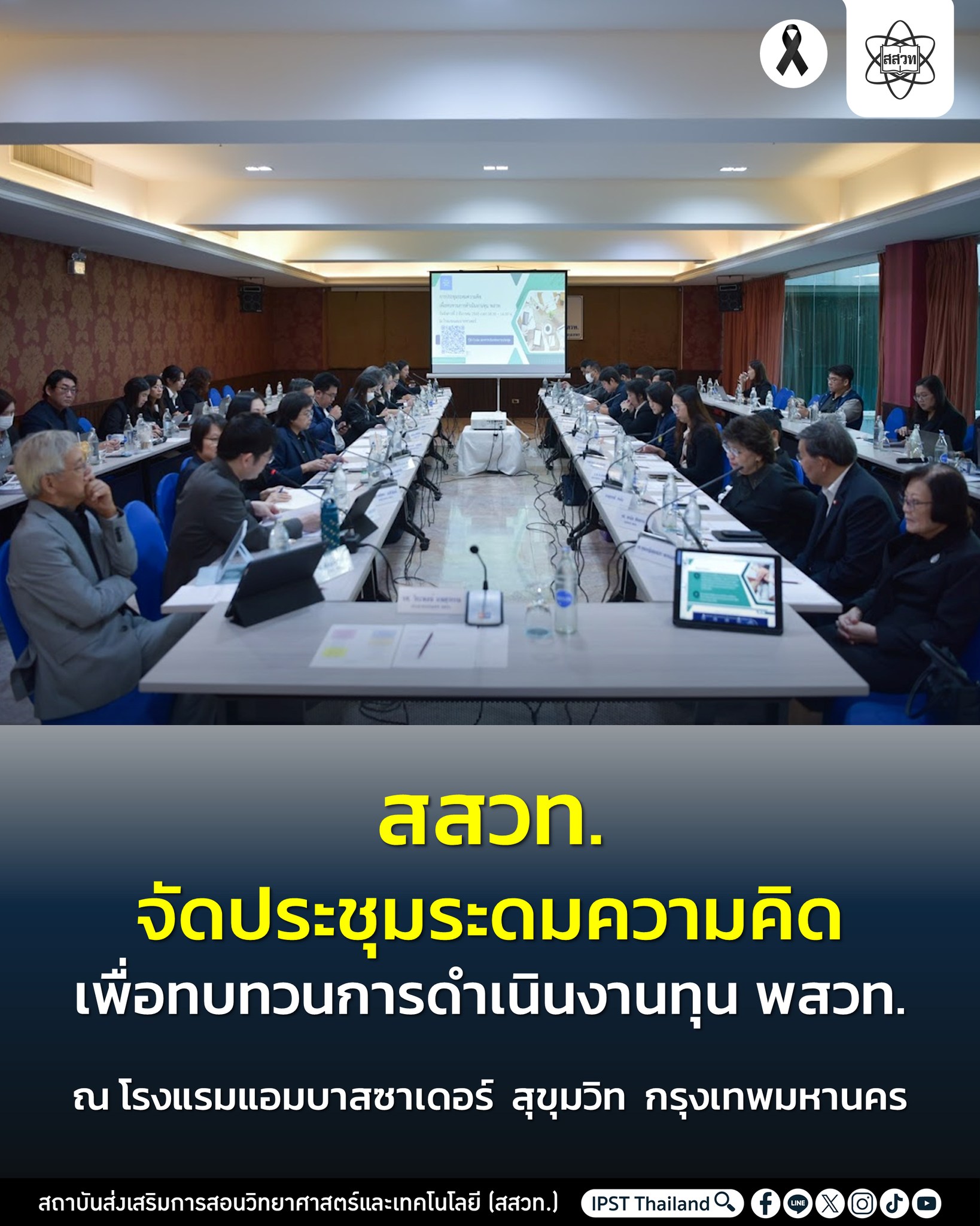 สถาบันส่งเสริมการสอนวิทยาศาสตร์และเทคโนโลยี (สสวท.) จัดประชุมระดมความคิดเพื่อทบทวนการดำเนินงานทุน พสวท. เมื่อวันอังคารที่ 2 ธันวาคม 2568 ณ โรงแรมแอมบาสซาเดอร์ สุขุมวิท กรุงเทพมหานคร