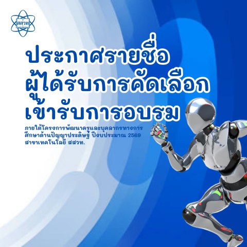 สถาบันส่งเสริมการสอนวิทยาศาสตร์และเทคโนโลยี (สสวท.) ประกาศรายชื่อผู้ได้รับการคัดเลือกเข้ารับการอบรมภายใต้โครงการพัฒนาครูและบุคลากรทางการศึกษาด้านปัญญาประดิษฐ์ ปีงบประมาณ2569