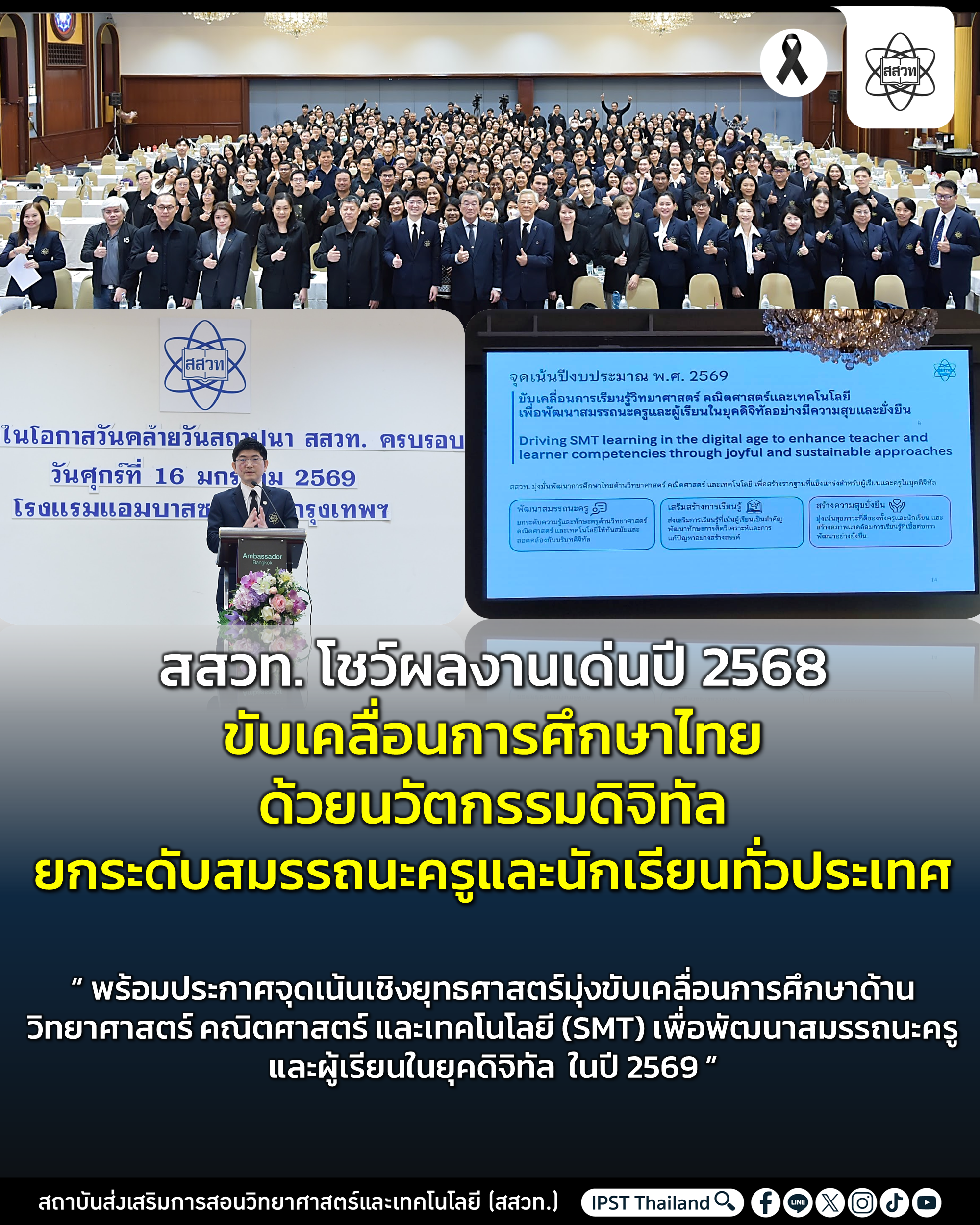 คลิกชมคลิป : สสวท. โชว์ผลงานเด่นปี 2568 ขับเคลื่อนการศึกษาไทยด้วยนวัตกรรมดิจิทัล ยกระดับสมรรถนะครูและนักเรียนทั่วประเทศ >> https://www.facebook.com/share/v/1GeStHi8xX/