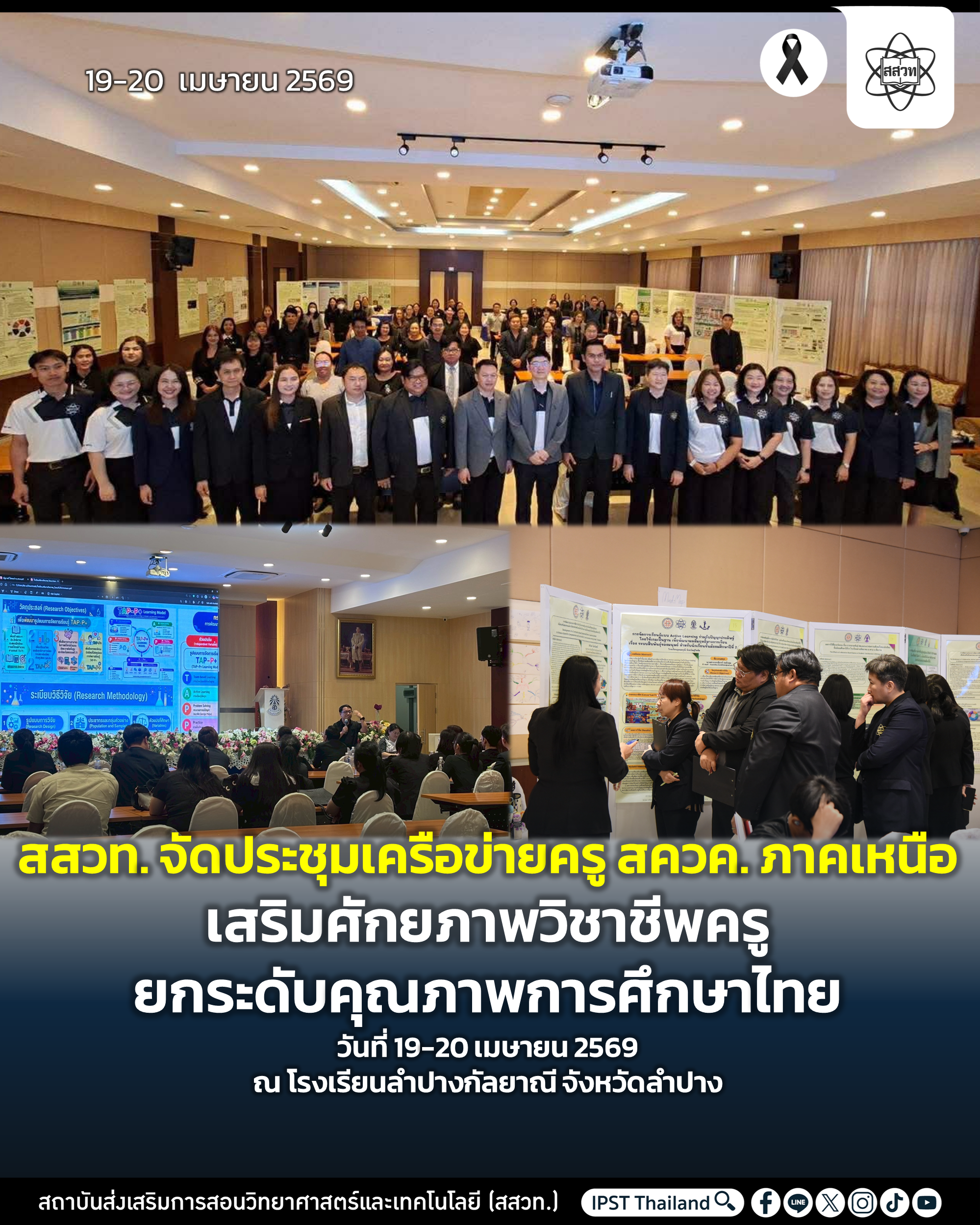 รองศาสตราจารย์ ดร.ธีระเดช เจียรสุขสกุล ผู้อำนวยการสถาบันส่งเสริมการสอนวิทยาศาสตร์และเทคโนโลยี (สสวท.) เป็นประธานเปิดการประชุมเครือข่ายวิชาการครู สควค. ภาคเหนือ ระหว่างวันที่ 19 – 20 เมษายน 2569 ณ โรงเรียนลำปางกัลยาณี จังหวัดลำปางพร้อมกล่าวถึงแนวทางการพัฒนาวิชาชีพครูผ่านเครือข่ายความร่วมมือกับศูนย์เครือข่ายวิชาการครู สควค. ในภูมิภาค ทั้งนี้ยังได้ร่วมแสดงความยินดีกับนายวิโรจ หลักมั่น ผู้อำนวยการโรงเรียนลำปางกัลยาณี และประธานศูนย์เครือข่ายวิชาการครู สควค. ภาคเหนือ ในโอกาสที่ได้รับการเลื่อนวิทยฐานะเป็น “ผู้อำนวยการเชี่ยวชาญ” ซึ่งแสดงถึงศักยภาพของบัณฑิตทุนโครงการ สควค. ที่มีบทบาทในการบริหารสถานศึกษาและการบริหารงานวิชาการที่ช่วยพัฒนาคุณภาพของผู้เรียนจนเป็นที่ประจักษ์