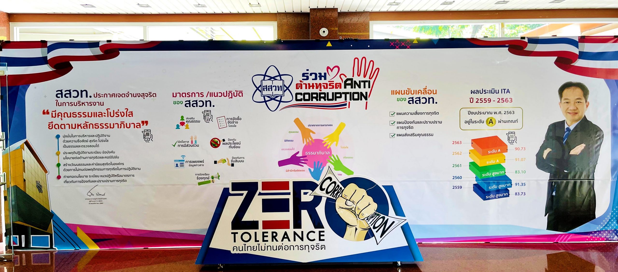 ศาสตราจารย์ ดร.ชูกิจ ลิมปิจำนงค์ ผู้อำนวยการสถาบันส่งเสริมการสอนวิทยาศาสตร์และเทคโนโลยี (สสวท.) พร้อมคณะผู้บริหาร สสวท. ร่วมถ่ายภาพใน นิทรรศการ “ สสวท. ร่วมใจต้านทุจริต” ณ ชั้น 1 อาคารอำนวยการ สสวท. และเชิญชวนให้บุคลากร สสวท. ร่วมชมนิทรรศการดังกล่าว เพื่อเป็นการสร้างความตระหนักรู้ ปลูกจิตสำนึกของบุคลากรในการต้านทุจริต และรับทราบข้อมูลต่าง ๆ ที่ สสวท. ดำเนินการ ได้แก่