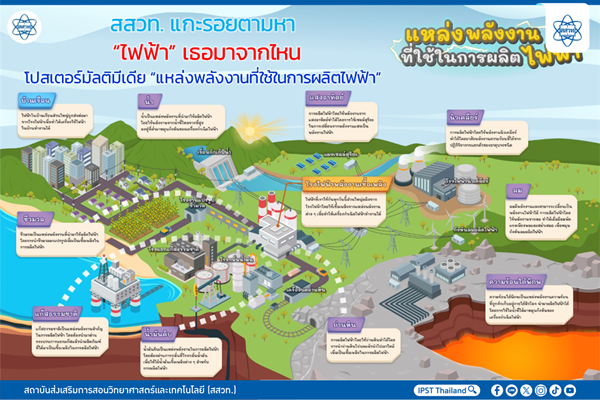 สสวท. แกะรอยตามหา “ไฟฟ้า” เธอมาจากไหน โปสเตอร์มัลติมีเดีย “แหล่งพลังงานที่ใช้ในการผลิตไฟฟ้า” 7 ตุลาคม 2567 แก้ไขล่าสุดเมื่อ: (แก้ไข 7 ตุลาคม 2024)