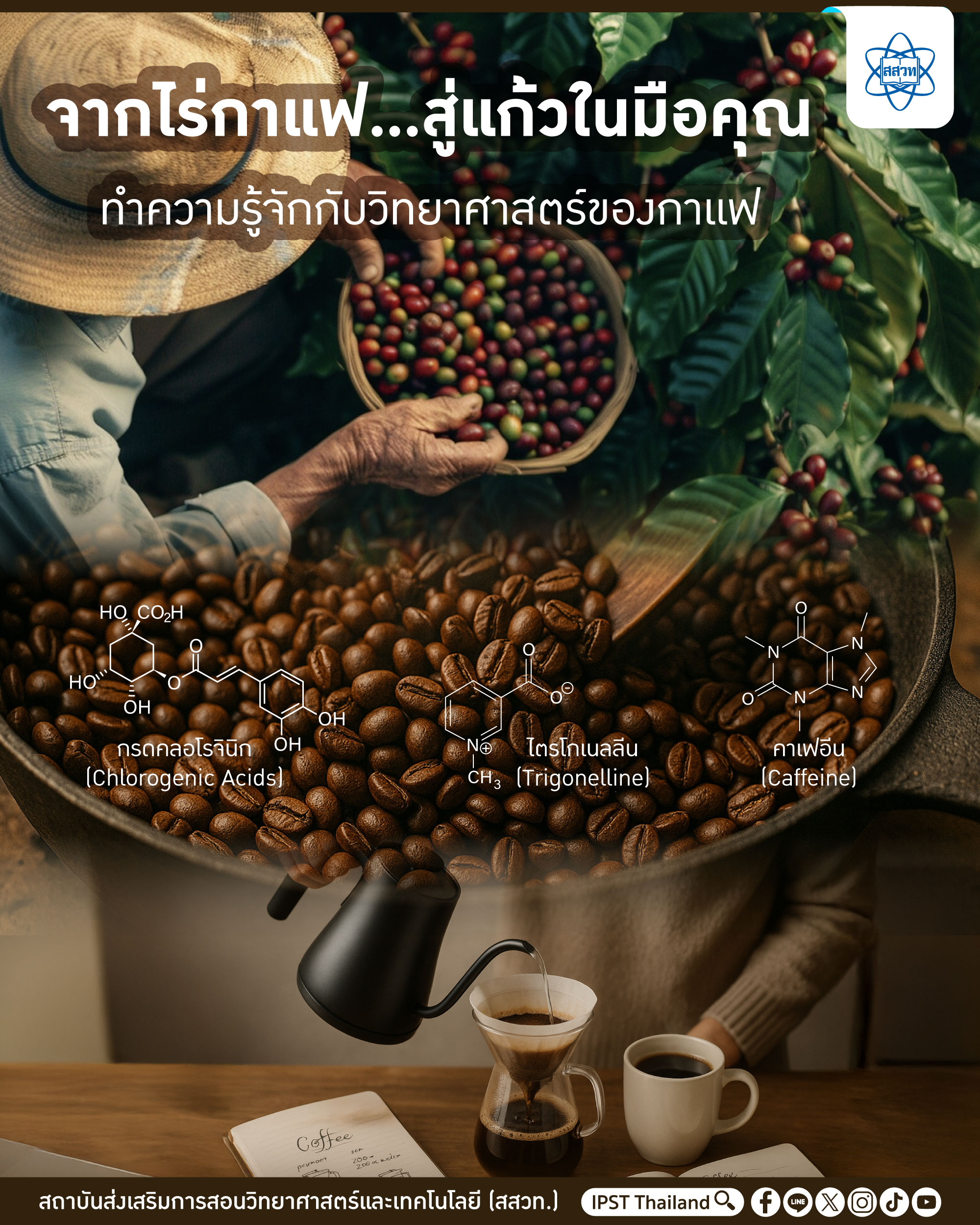 ใครจะคิดว่ากาแฟหนึ่งแก้วจะเป็นต้นทางให้เราได้สังเกต ทดลอง และทำความเข้าใจธรรมชาติในชีวิตประจำวัน ที่มีจุดเริ่มต้นที่ไร่กาแฟมาสู่กาแฟถ้วยโปรดที่บ้าน ซึ่งทุกขั้นตอนล้วนมีวิทยาศาสตร์อยู่เบื้องหลัง
